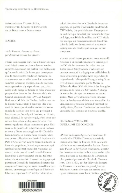Trois acquisitions de la Bibliotheca Bodmeriana