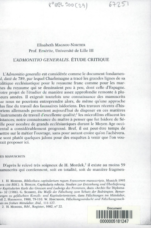 L'Admonitio generalis : étude critique
