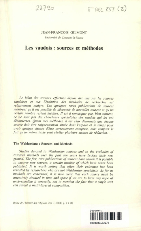 Les Vaudois : sources et méthodes