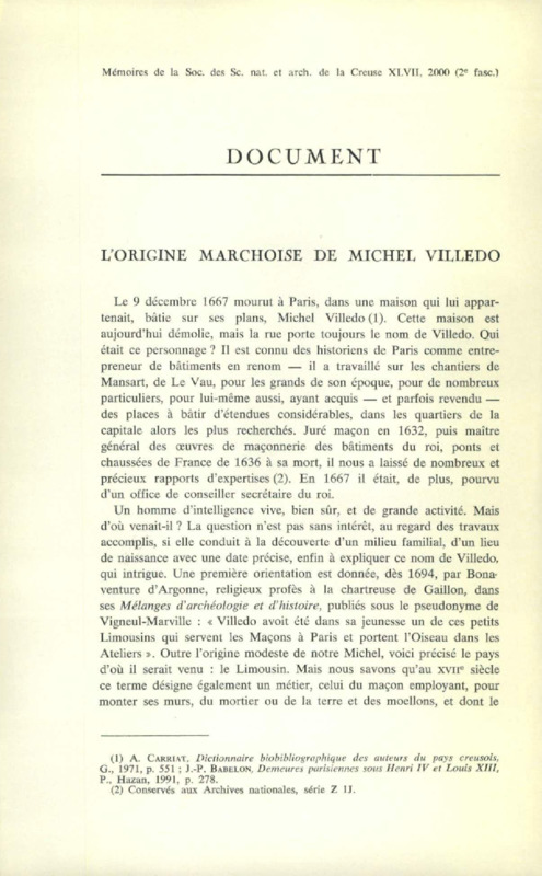 L'origine marchoise de Michel Villedo