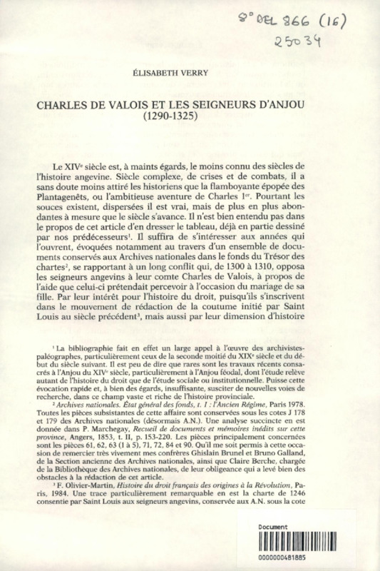 Charles de Valois et les seigneurs d'Anjou (1290-1325)