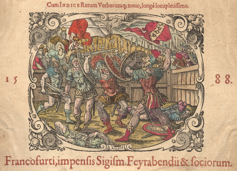 Sujet : Gravure sur bois Frontispice (typographie) Dialogues latins
