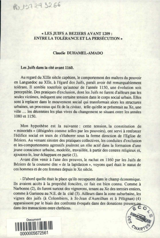 Les juifs à Béziers avant 1209 : entre la tolérance et la persécution