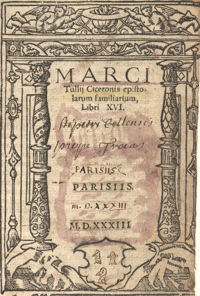 Frontispice pour Marci Tullii Ciceronis epistolarum familiarium, libri XVI