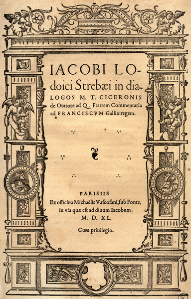 Frontispice pour Jacobi Lodoici Strebaei In dialogos M. T. Ciceronis de Oratore ad Q. fratrem commentaria, ad Franciscum Galliae regem