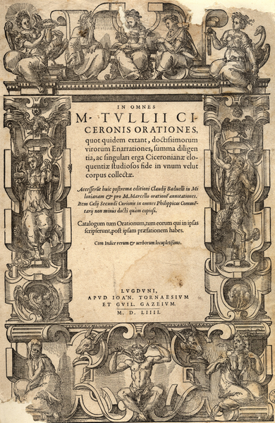 Frontispice pour In omnes M. Tullii Ciceronis orationes quot quidem extant, doctissimorum virorum enarrationes, summa diligentia, ac singulari erga Ciceronianae eloquentiae studiosos fide in unum velut corpus collectae