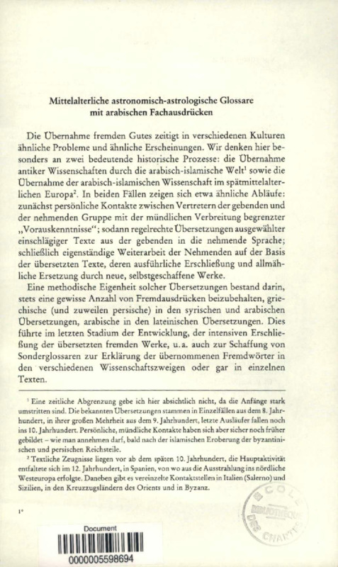 Mittelalterliche astronomisch-astrologische Glossare mit arabischen Fachausdrücken