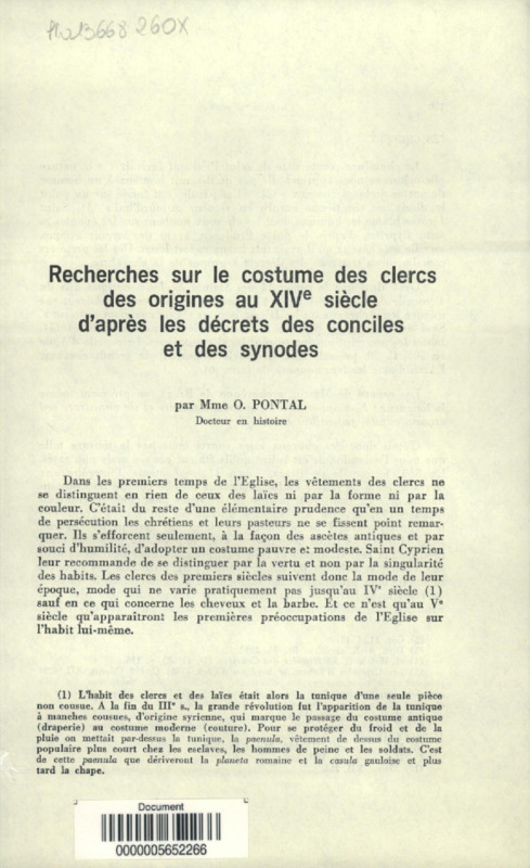 Recherches sur le costume des clercs des origines au XIVe siècle d'après les décrets des conciles et des synodes