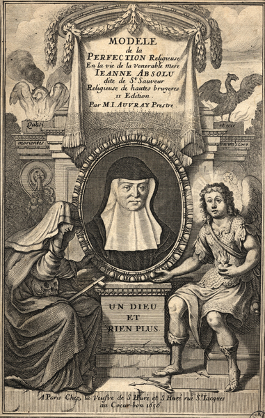 Frontispice pour Modèle de la perfection religieuse en la vie de la venerable mère Jeanne Absolu