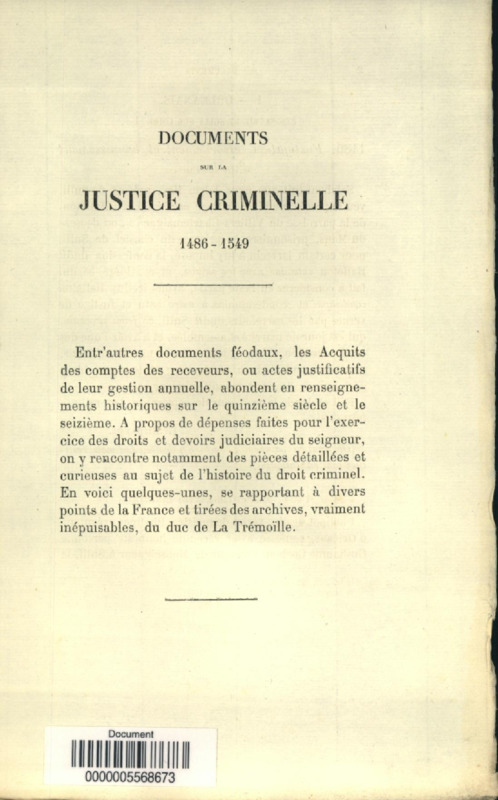 Documents sur la justice criminelle, 1586-1549, tirés du chartrier de Thouars