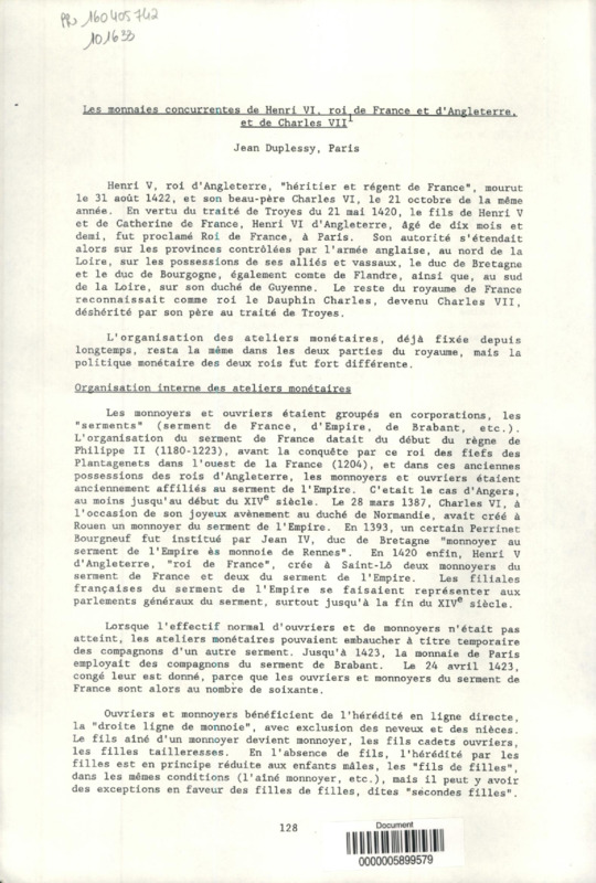 Les monnaies concurrentes de Henri VI, roi de France et d'Angleterre, et de Charles VII