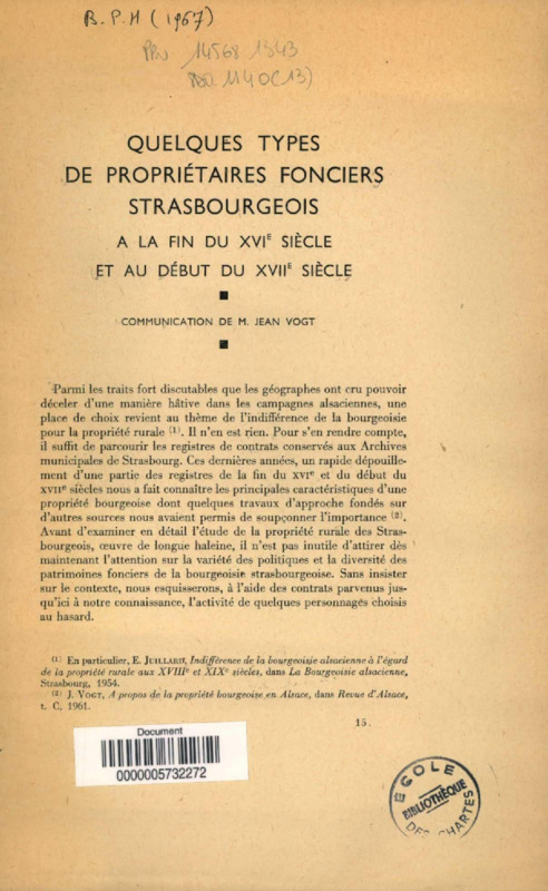 Quelques types de propriétaires fonciers strasbourgeois à la fin du XVIe siècle et au début du XVIIe siècle