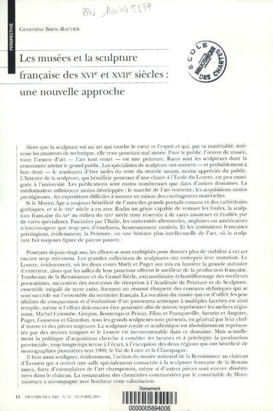 Les musées et la sculpture française des XVIe et XVIIe siècles : une nouvelle approche