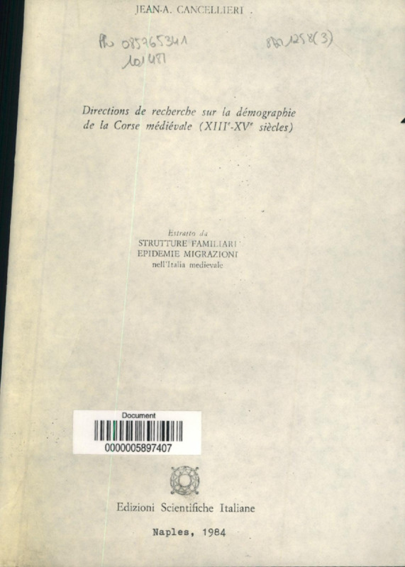 Directions de recherche sur la démographie de la Corse médiévale, XIIIè-XVè siècles