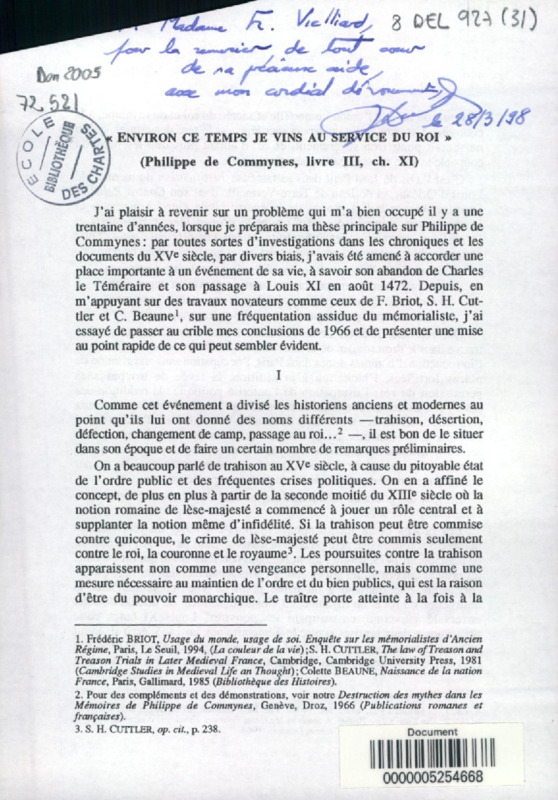 "Environ ce temps je vins au service du roi" : Philippe de Commynes, livre III, ch. XI