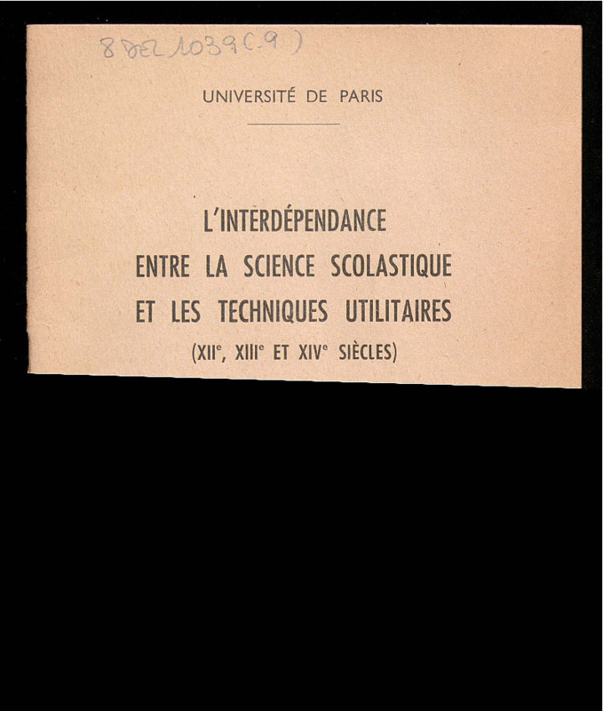 L'interdépendance entre la science scolastique et les techniques utilitaires (XIIe, XIIIe et XIVe siècles) : conférence faite au Palais de la Découverte le 5 janvier 1957