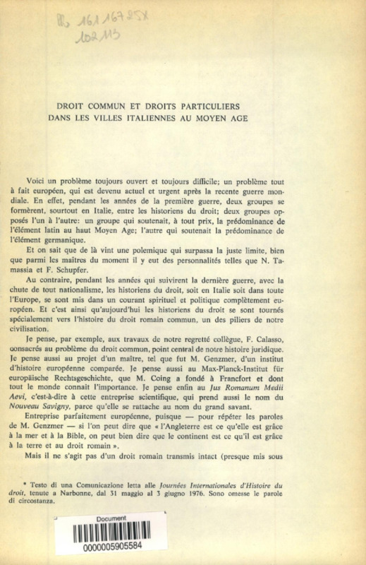 Droit commun et droits particuliers dans les villes italiennes au Moyen âge