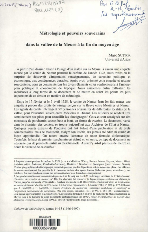 Métrologie et pouvoirs souverains dans la vallée de la Meuse à la fin du moyen âge