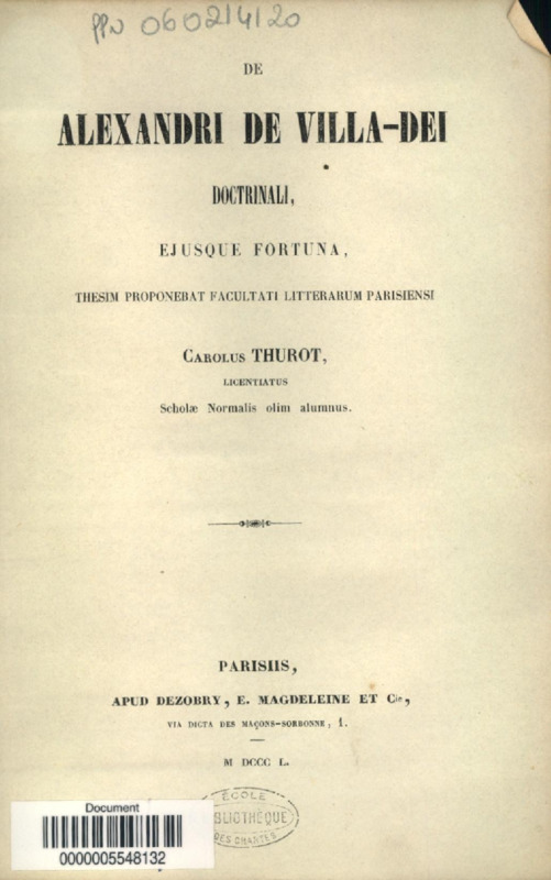 De Alexandri de Villa-Dei doctrinali, ejusque fortuna : thesim proponebat Facultati Litterarum Parisiensi