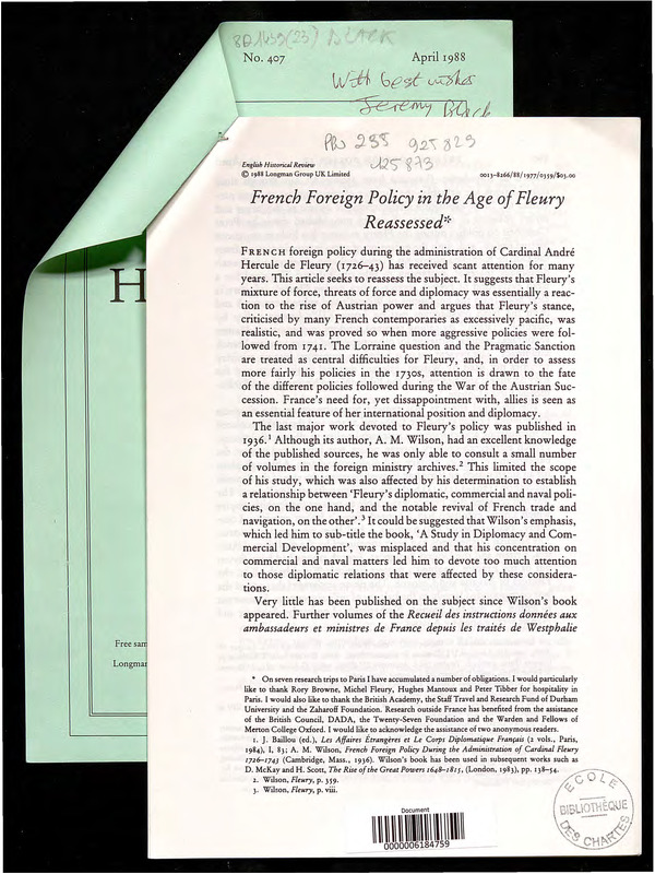 French Foreign Policy in the Ages of Fleury : Reassessed