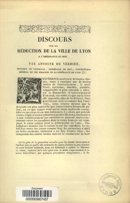 Frontispice pour Prosopographie, ou Description des hommes illustres et autres, depuis la création du monde jusques à ce temps,... enrichie de plusieurs figures et médailles, par Antoine Du Verdier,