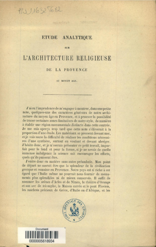 Etude analytique sur l'architecture religieuse de la Provence au Moyen âge