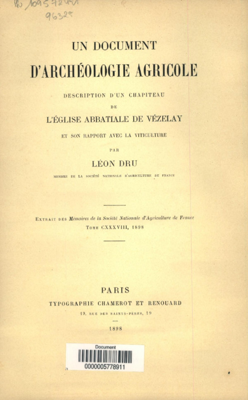 Un document d'archéologie agricole : Description d'un chapiteau de l' église abbatiale de Vézelay et son rapport avec la viticulture
