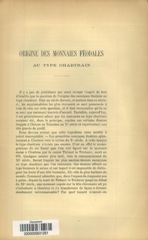 Origine des monnaies féodales au type chartrain