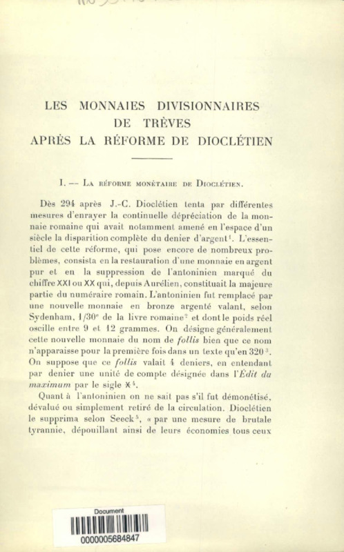 Les monnaies divisionnaires de Trèves après la réforme de Dioclétien