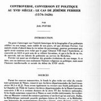 Controverse, conversion et politique au XVIIe siècle : le cas de Jérémie Ferrier (1576-1626)