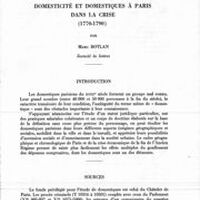 Domesticité et domestiques à Paris dans la crise (1770-1790)