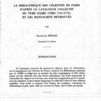 La bibliothèque des Célestins de Paris d’après le catalogue collectif du Père Daire (vers 1767-1776) et les manuscrits retrouvés