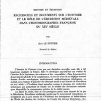 Histoire et érudition. Recherches et documents sur l’histoire et le rôle de l’érudition médiévale dans l’historiographie du XIXe siècle