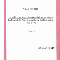 Le milieu socio-professionnel des avocats au Parlement de Paris à la veille de la Révolution (1760-1790) Le milieu socio-professionnel des avocats au Parlement de Paris à la veille de la Révolution (1760-1790) position de thèse Auteur Poirot, Albert Date de soutenance 1977 Autre version Consulter le texte sur le site des positions de thèses Thèse Le milieu socio-professionnel des avocats au Parlement de Paris à la veille de la Révolution (1760-1790)