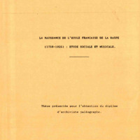 La naissance de l’École française de la harpe (1750-1825). Étude sociale et musicale La naissance de l’École française de la harpe (1750-1825). Étude sociale et musicale position de thèse Auteur Guelfucci, Emmanuelle Date de soutenance 1991 Autre version Consulter le texte sur le site des positions de thèses Thèse La naissance de l’École française de la harpe (1750-1825). Étude sociale et musicale