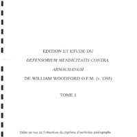 Édition et étude du Defensorium mendicitatis contra Armachanum de William Woodford, O.F.M. (v. 1395)