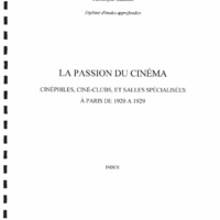 La passion du cinéma : cinéphiles, ciné-clubs et salles spécialisées à Paris de 1920 à 1929 La passion du cinéma : cinéphiles, ciné-clubs et salles spécialisées à Paris de 1920 à 1929 position de thèse Auteur Gauthier, Christophe Date de soutenance 1997 Autre version Consulter le texte sur le site des positions de thèses Thèse La passion du cinéma : cinéphiles, ciné-clubs et salles spécialisées à Paris de 1920 à 1929