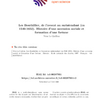 Les Bouthillier, de l’avocat au surintendant (v. 1540-1652), histoire d’une ascension sociale et formation d’une fortune