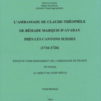 L’ambassade de Claude-Théophile de Bésiade, marquis d’Avaray, près les cantons suisses (1716-1726) : étude du fonctionnement de l’ambassade de France en Suisse au début du XVIIIe siècle