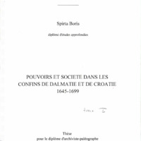 Pouvoirs et société dans les confins de Dalmatie et de Croatie (1645-1699) Pouvoirs et société dans les confins de Dalmatie et de Croatie (1645-1699) position de thèse Auteur Spirta, Boris Date de soutenance 1998 Autre version Consulter le texte sur le site des positions de thèses Thèse Pouvoirs et société dans les confins de Dalmatie et de Croatie (1645-1699)