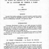 La place de France et le lotissement de la couture du Temple à Paris, 1608-1630
