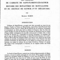 Les origines de l’abbaye de Saint-Florent-lès-Saumur ; histoire des monastères du Mont-Glonne et du château de Saumur (Ve-vie siècles-1026)