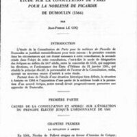 Étude sur la Consultation de Paris pour la noblesse de Picardie de Dumoulin (1564)