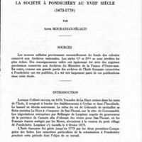 La société à Pondichéry au XVIIIe siècle (1673-1770)