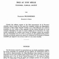Nice au XVIIe siècle. Economie, famille, société