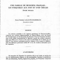 Une famille de musiciens français : les Forqueray aux XVIIe et XVIIIe siècles. Étude sociale