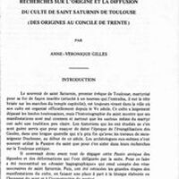 Recherches sur l’origine et la diffusion du culte de saint Saturnin de Toulouse (des origines au concile de Trente)