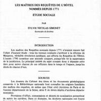 Les maîtres des Requêtes de l’Hôtel nommés depuis 1771. Étude sociale