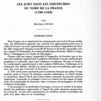 Les juifs dans les seigneuries du nord de la France (1180-1328)