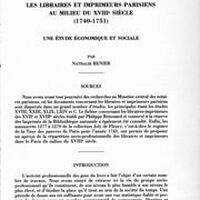 Les libraires et imprimeurs parisiens au milieu du XVIIIe siècle (1740-1751). Une étude économique et sociale